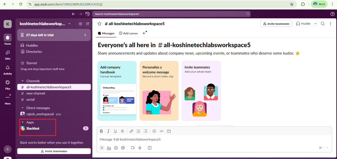 - Open your Slack workspace